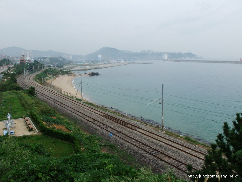 드뎌 추암 해수욕장이 눈에 들어 오네요... 추암역이 32코스의 종착지입니다.