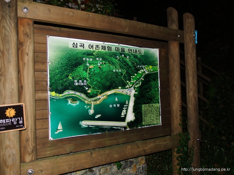19:19 그렇게 제가 싫어하는 어두울때 걷기를 살짝 더해서, 심곡항에 도착합니다. 저는 여기 헌화정에서 1박을 할겁니다.
