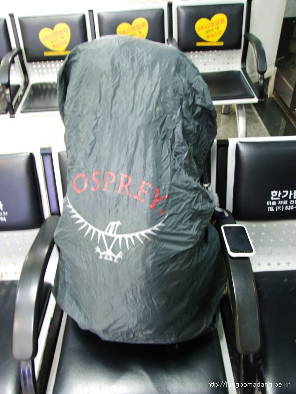 22:35 강남고속버스 터미널에 도착합니다. 비소식이 예정되어 있어 이렇게 배낭커버도 미리 장착했구요. ^^