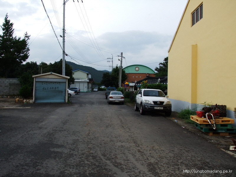 회관 지나자마자 좌측길로 진행합니다.