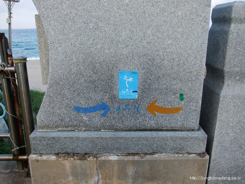 13:57 해파랑길 이정표가 보이네요... 몬진 몰라도 우측으로 가라네요. ㅎㅎㅎ