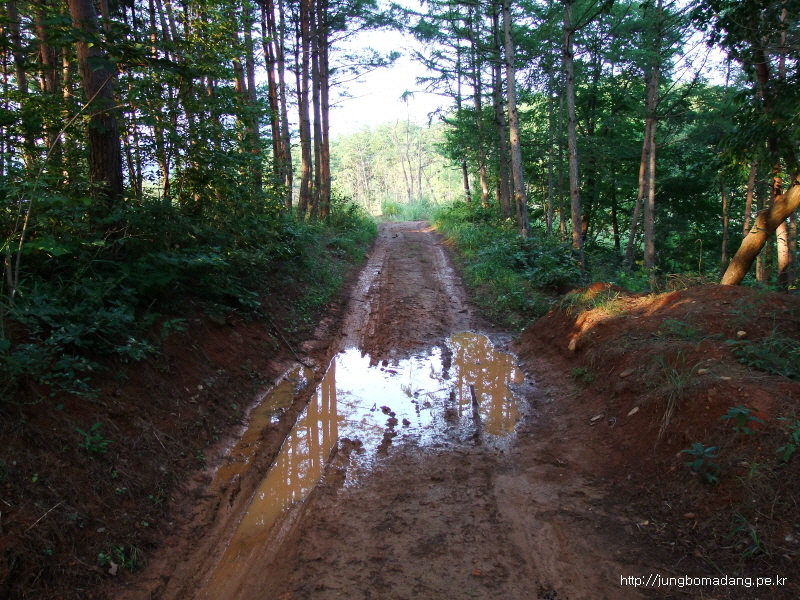 간밤에 비가 오긴 왔나봐요... 이렇게 물고인 곳이 몇군데 있네요... 옆으로 살짝 비껴가면 신발이 덜 오염됩니다...