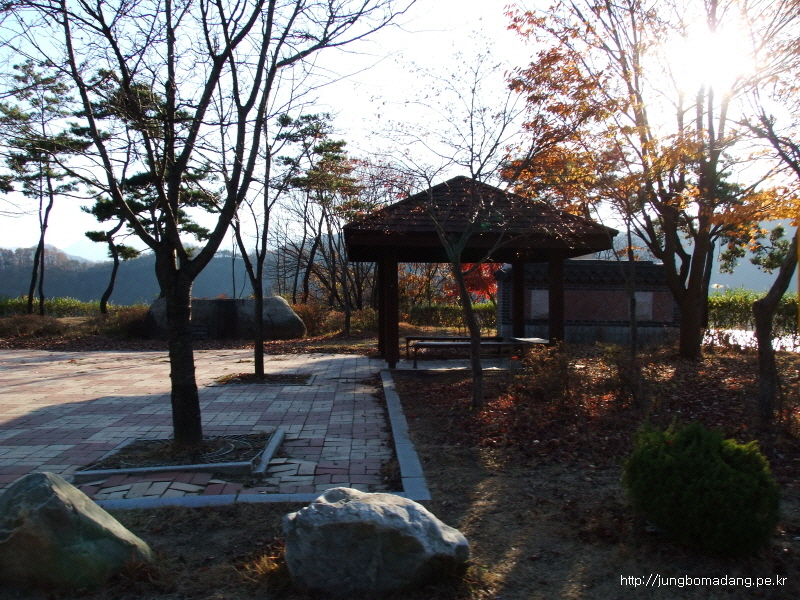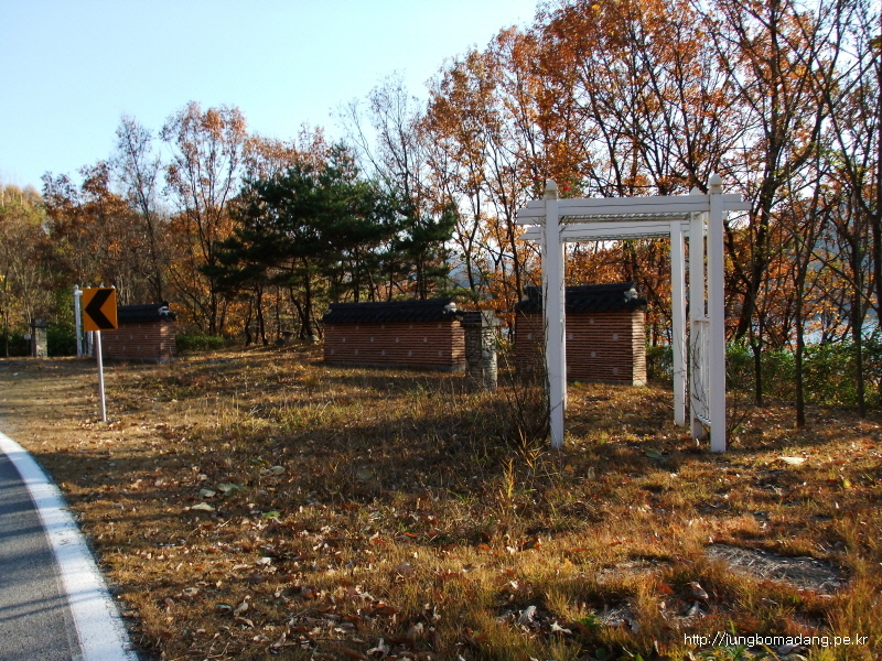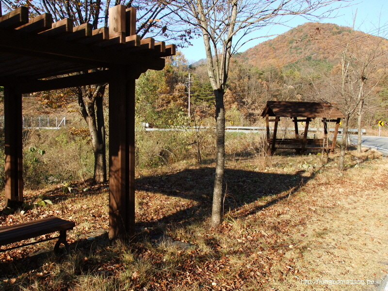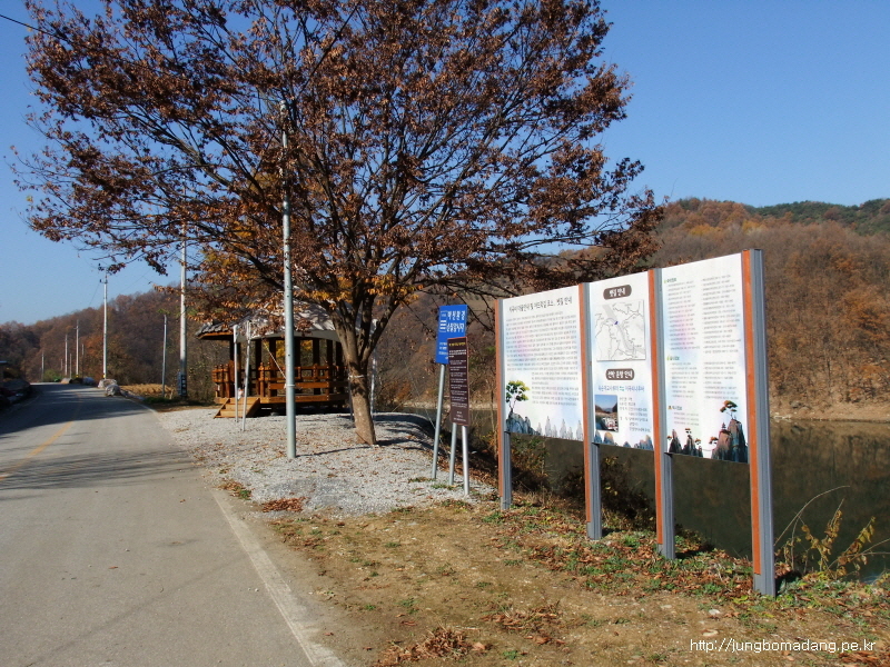 14:50 그렇게 상천리마을회관에서 4코스를 끝내고, 5코스인 옥순봉길로 향하는 데,,, 쉼터가 보입니다... 아래쪽에 정자도