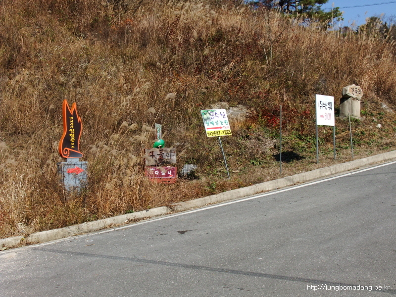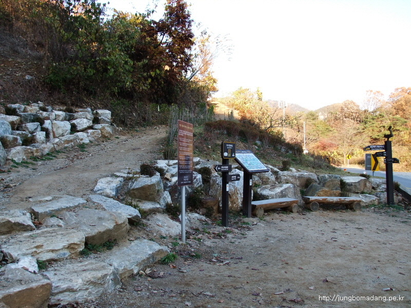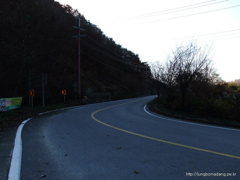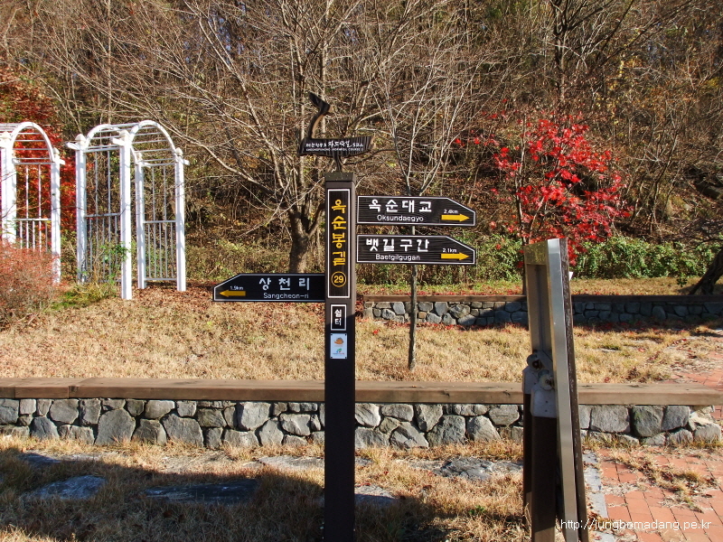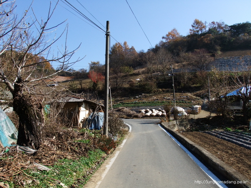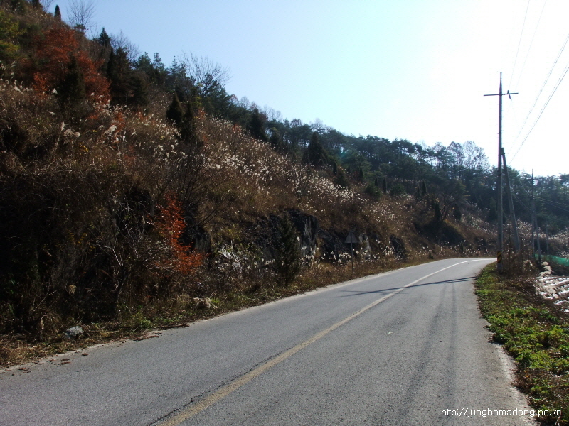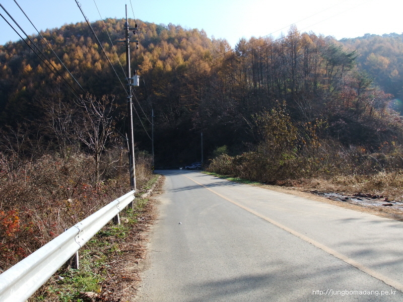 큰길 나와서 안내에는 좌측에 10분 거리의 저 상천숯가마를 들려 가라고 되어 있는 데, 전 궂이 숯가마까지 가야하나 생각들어 저 길은 건너 뛰고, 곧장 우측 길로 진행합니다...