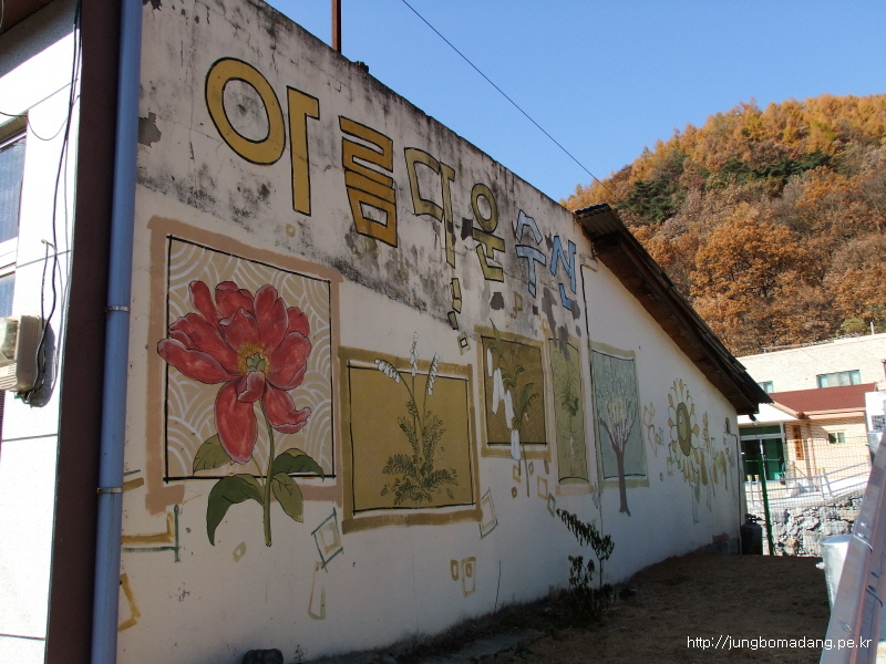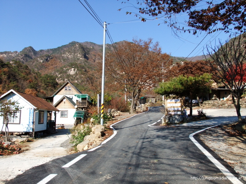 상천리마을회관입니다. 여기서 용담폭포 갔다 와서 옥순봉길로 갑니다. 근데, 용담폭포 안가시는 게...