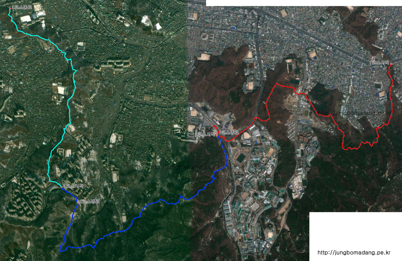 1코스는 빨간선... 위 갈림에서 관악구청길은 잘 안 간다...