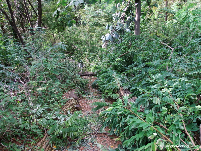 헉~ 태풍 때문인지 나무가 쓰러져 있다. 물론 살짝 넘어가면 문제 없고.