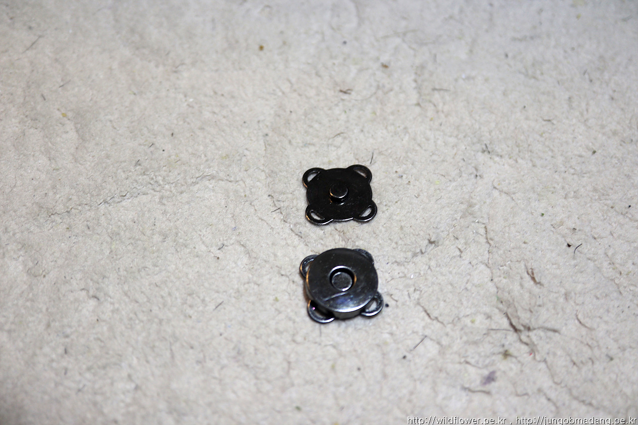 카메라 렌즈와 배터리등 악세서리를 유용하게 담고 다니는 렌즈 가방이 버클 방식으로 되어 있어 좀 더 편리하게 개폐가 가능하게 자석 단추로 교체 작업을 하기로 합니다.