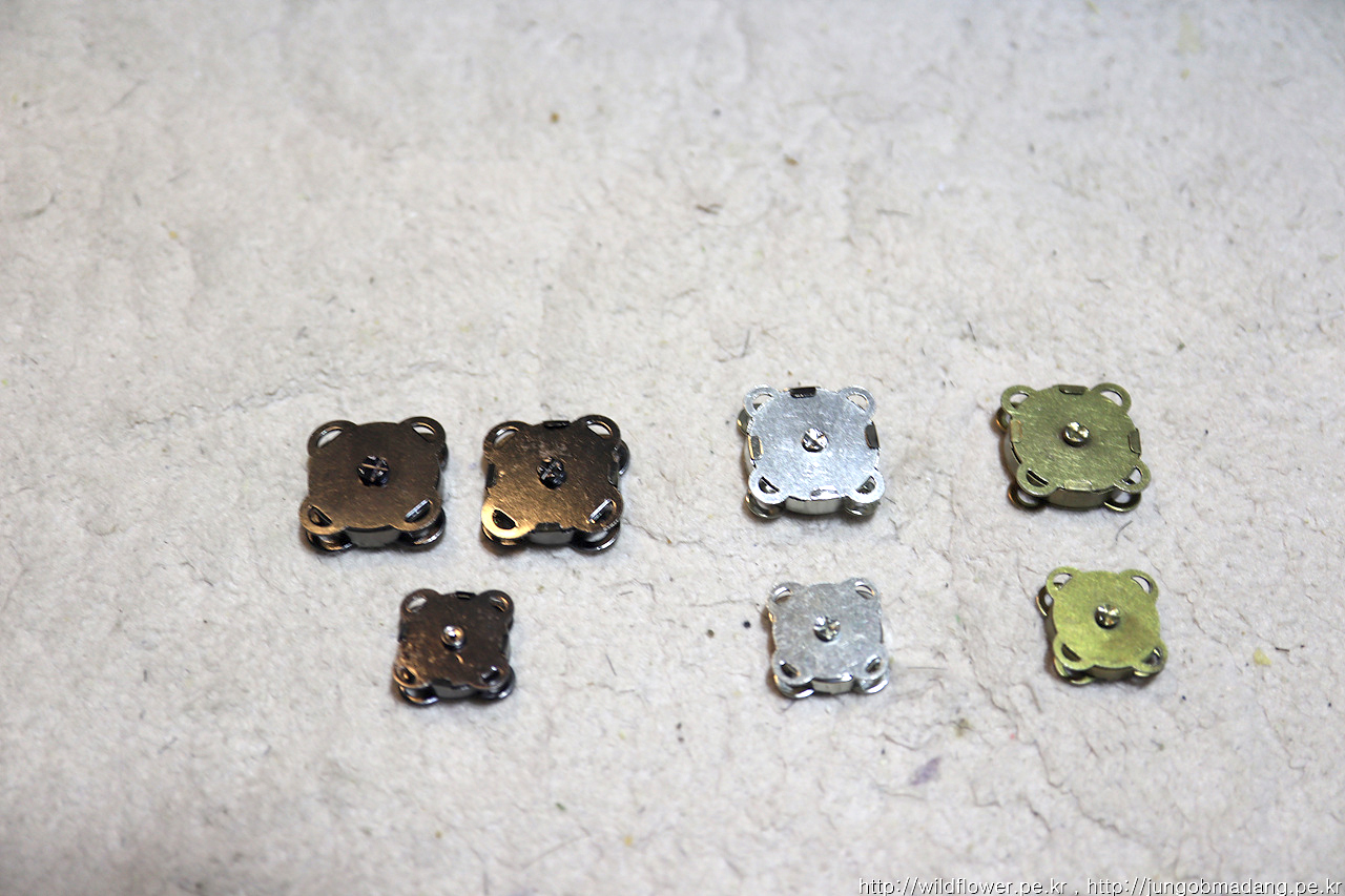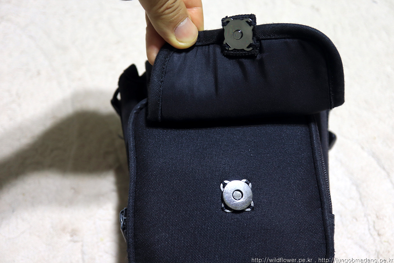 카메라 렌즈와 배터리등 악세서리를 유용하게 담고 다니는 렌즈 가방이 버클 방식으로 되어 있어 좀 더 편리하게 개폐가 가능하게 자석 단추로 교체 작업을 하기로 합니다.