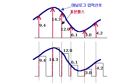 시간T를표본화주기라하고표본화주기간격으로표본치를만드는 조작을표본화라 한다.