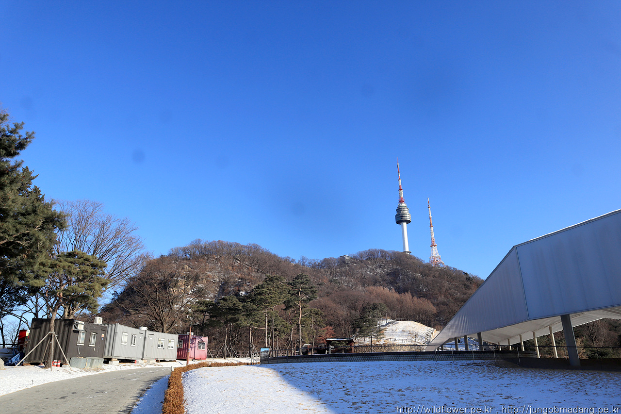 (그래 걸으면 몸에서 열 날테니 걸어 보자) 하차 30분 전부터 뜯어둔 양쪽 주머니에 있는 핫팩에 의지해서 남산 정상을 향해 걸어 봅니다.