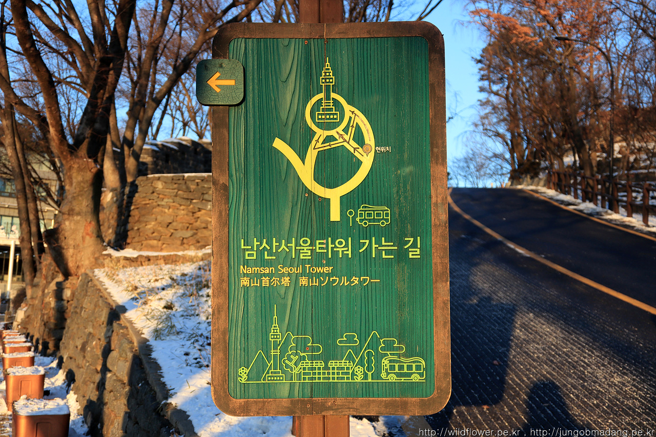 (그래 걸으면 몸에서 열 날테니 걸어 보자) 하차 30분 전부터 뜯어둔 양쪽 주머니에 있는 핫팩에 의지해서 남산 정상을 향해 걸어 봅니다.