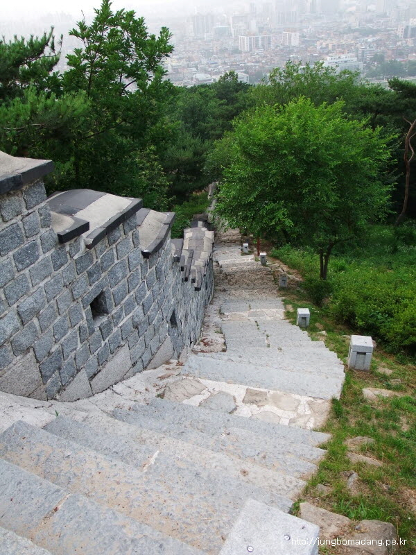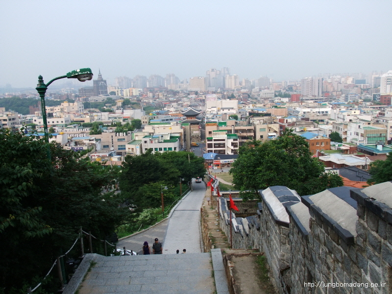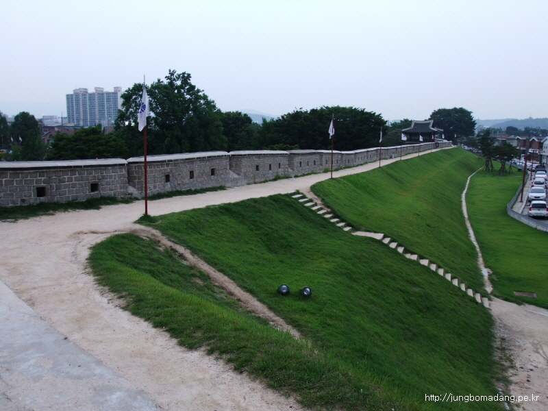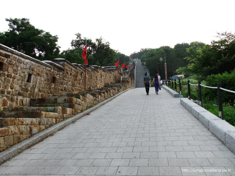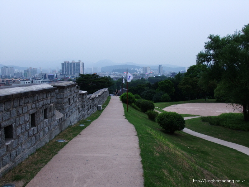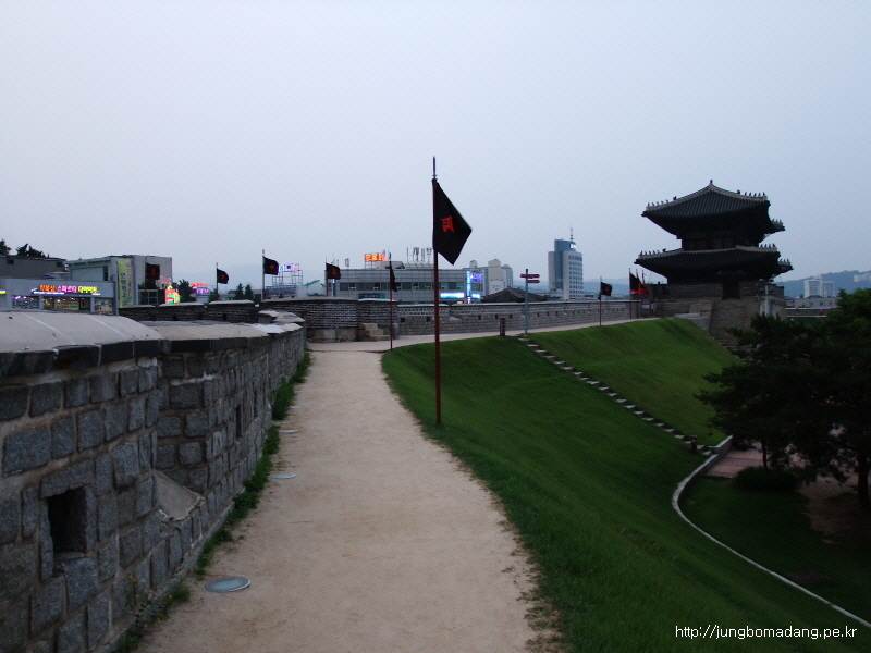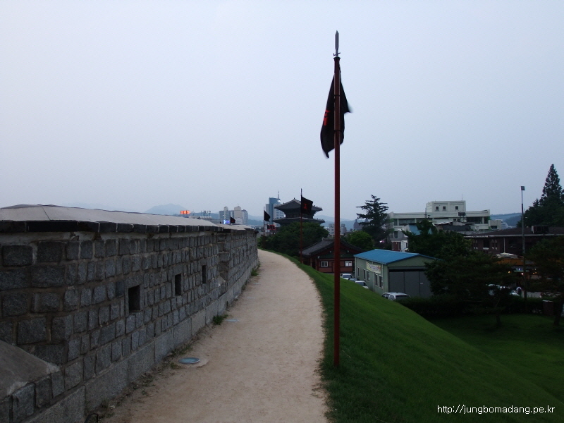 중간쯤 올라가서 뒤를 바라보니 팔달문 옆구리가 보이네요 ^^