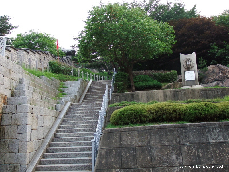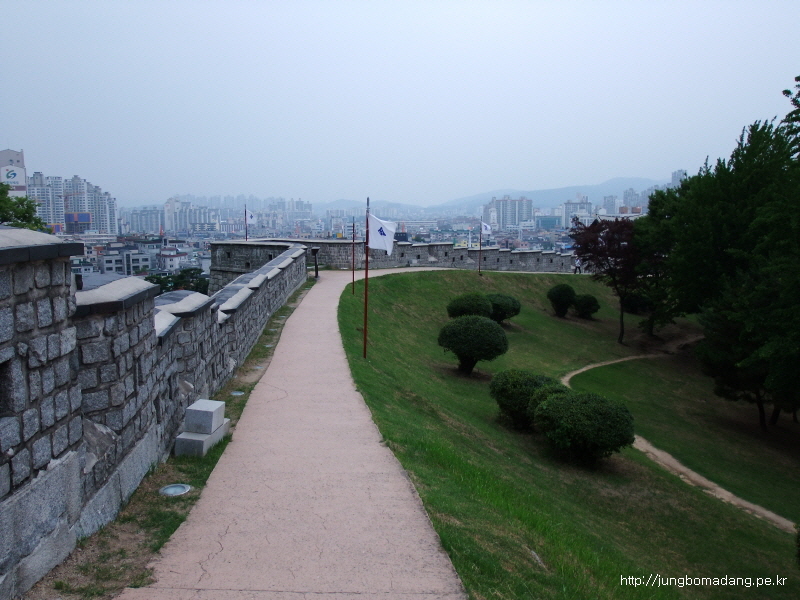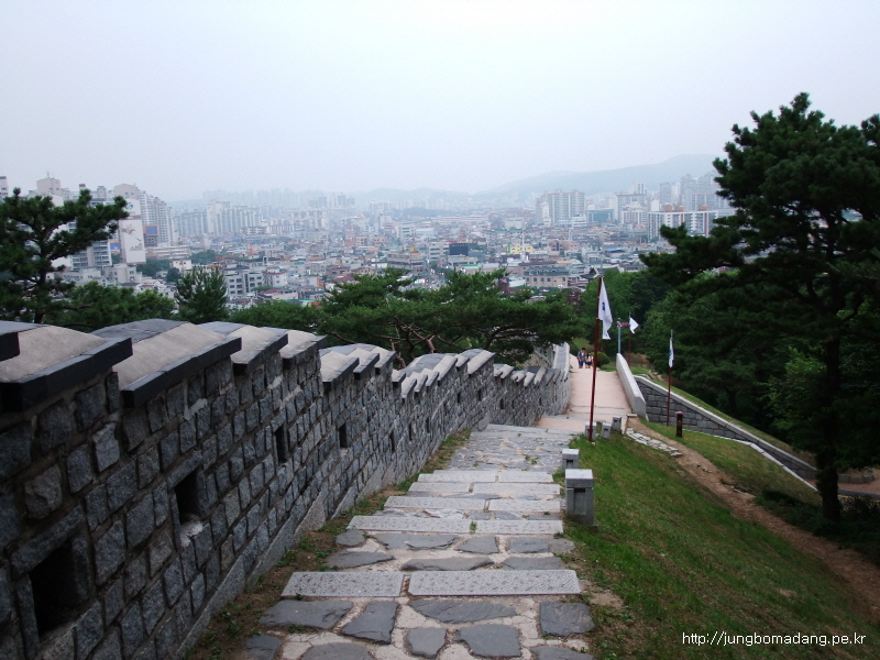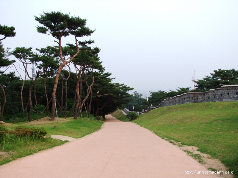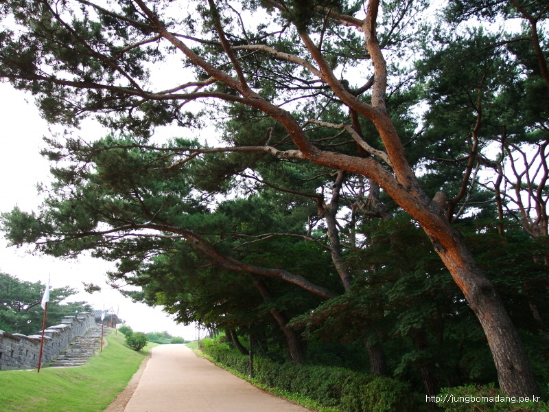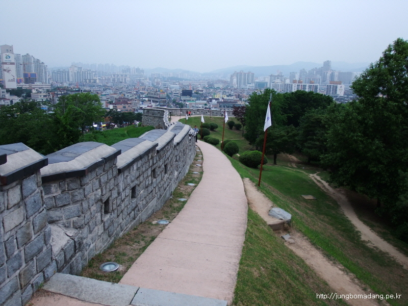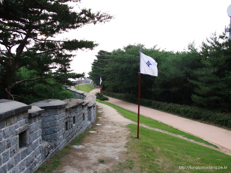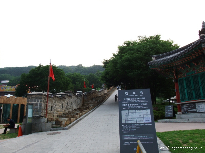 중간쯤 올라가서 뒤를 바라보니 팔달문 옆구리가 보이네요 ^^
