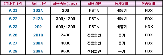모뎀은 미국 중심의 Bell 표준과 유럽 중심의 ITU-T 표준의 2가지가 있다