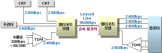 같이 멀티 포트 기능이 있어 여러대의 터미널이 한 개의 제한 거리 모뎀을 공동으로 이용할 수