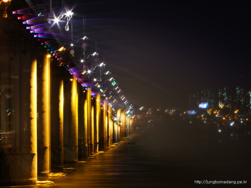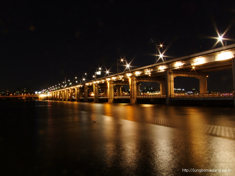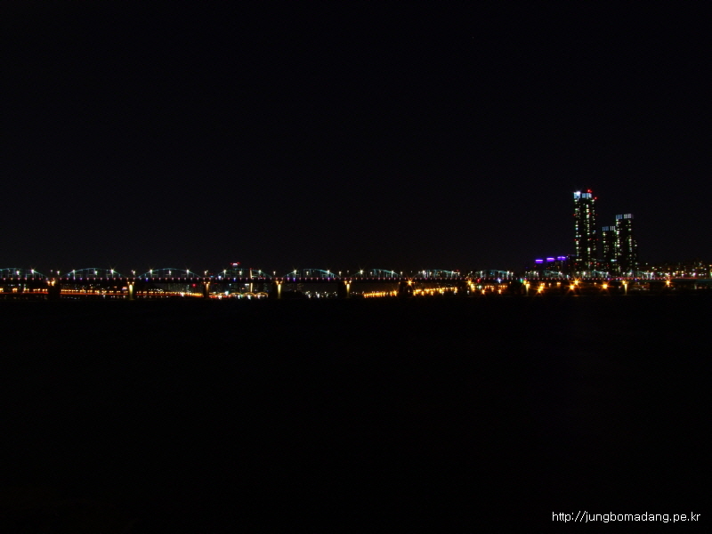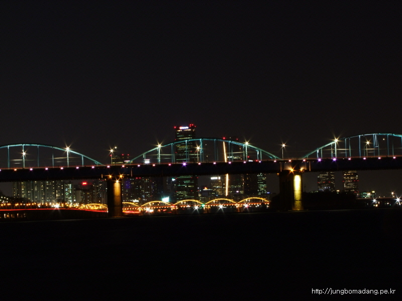 파란 불빛 동작대교와 누런불빛 한강대교.