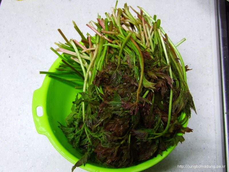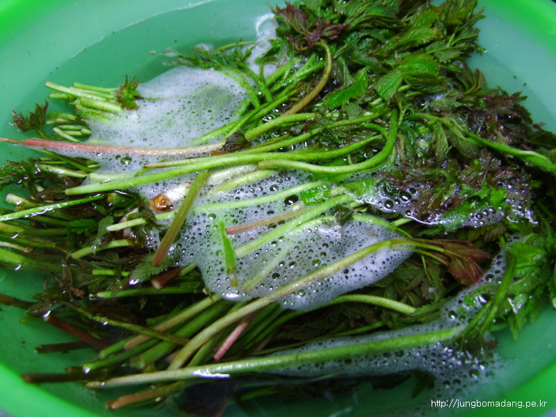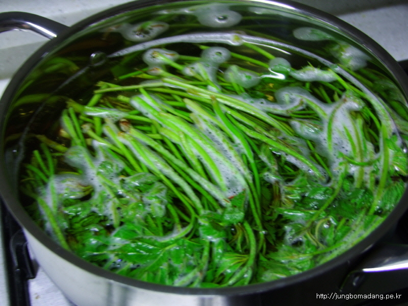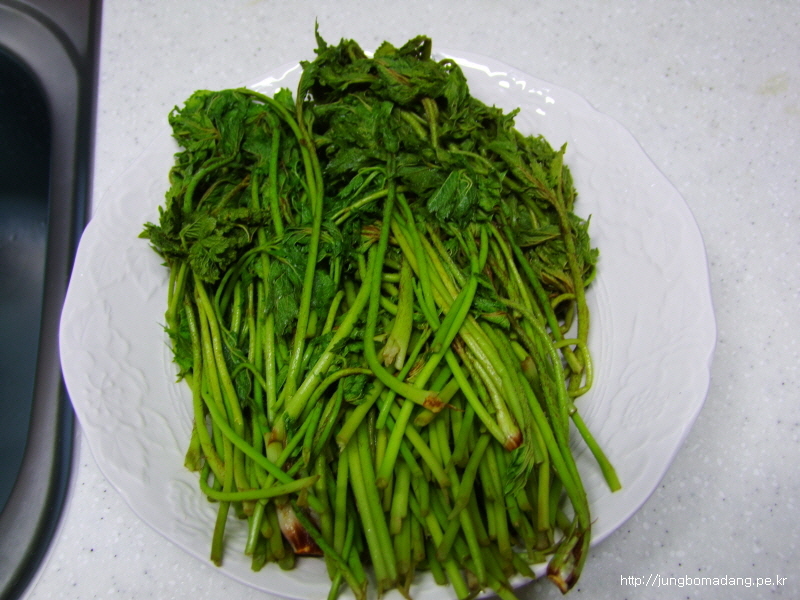 눈개승마(삼나물)이라고 확인이 되어, 바로 삶아 버립니다(버린다는 게 아임~)