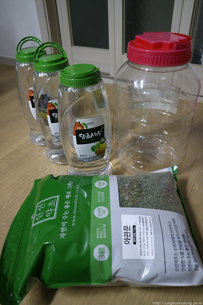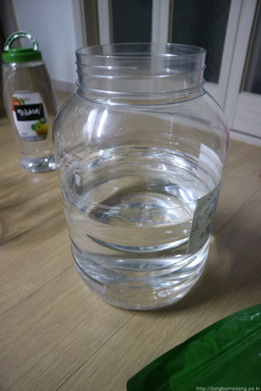 그리고 집에서 뒹굴구 있는 잘 씻어서 말려둔 담금주용 플라스틱통을 준비하구요.
