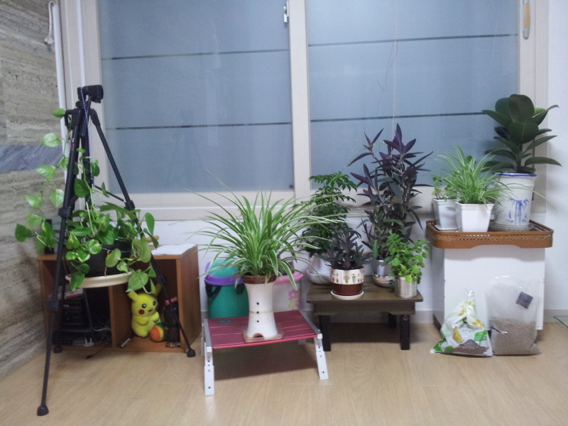 점점 거실 한쪽을 차지하고 있는 화분들... 조만간 수납장 적절하게 구입해서 정리좀 해봐야겠네요.