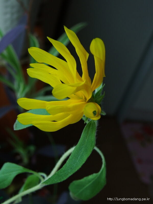 줄기가 영양이 부족한지 가늘고, 잎도 상태가 안좋은 데 꽃이 피기 시작하다니 신기합니다.