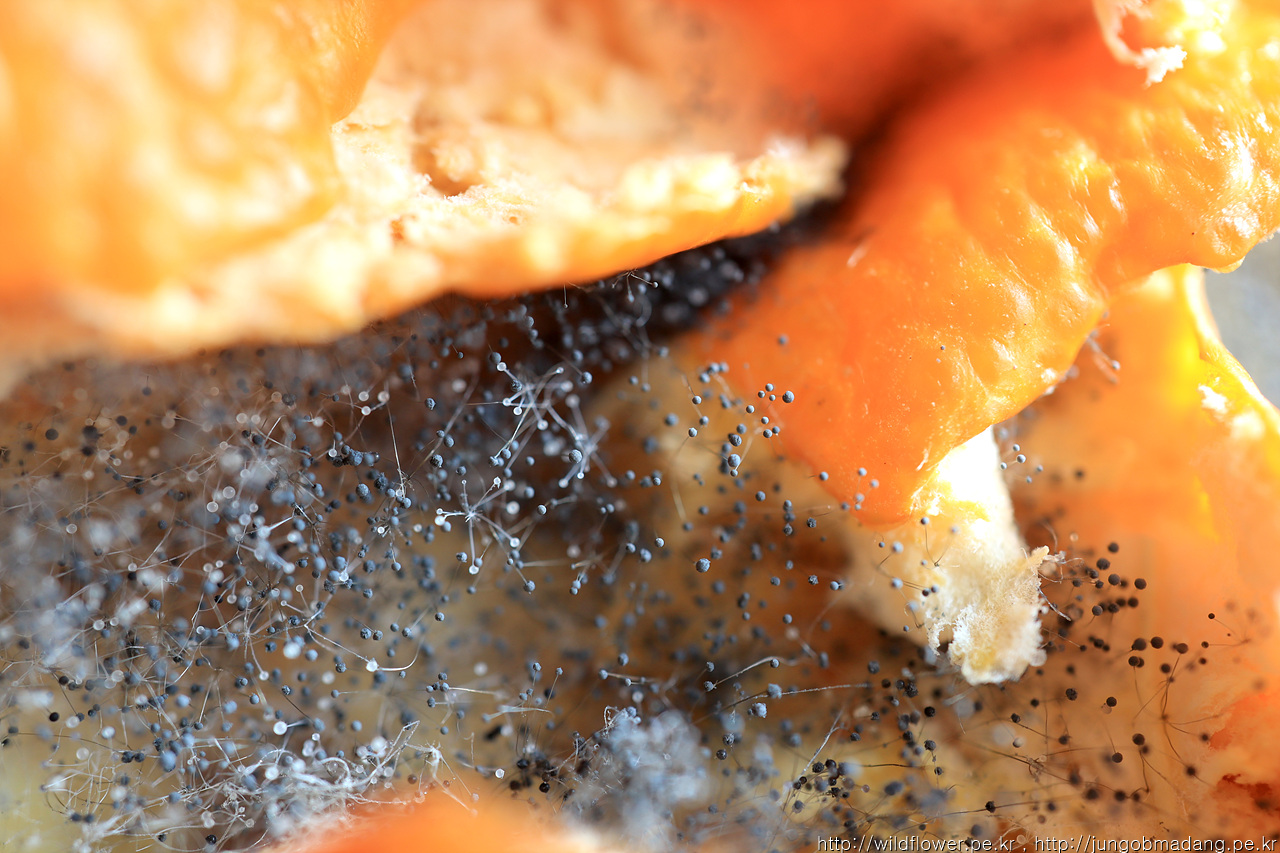 귤 껍질에 옹기 종기 모여 있는 곰팡이를 매크로 렌즈를 통해 바라 보았습니다.
