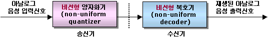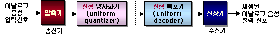 아날로그 음성신호를 압축해서 선형양자화기에 입력하고, 수신기의 선형 복호기에서 복호된 아날