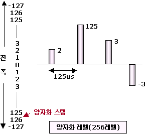 아날로그표본크기를8비트의 값으로 부호화하는데이것은최대값이
