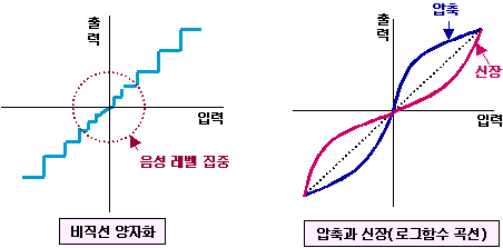보완하기위한방법으로직선(선형)양자화 대신 비직선(비선형)양자화를 사용하게되는데