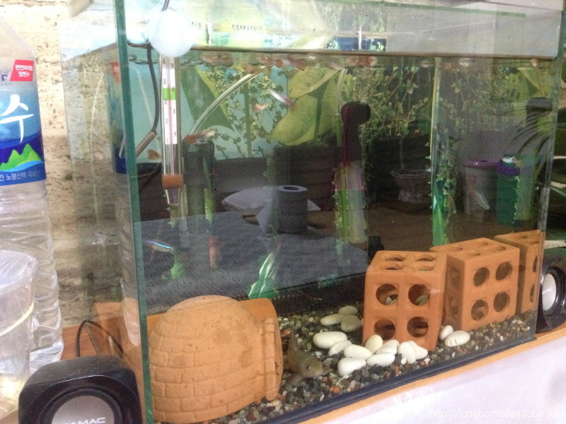 하직 새우들은 몰려들지 않고 있는 데, 닥터피쉬가 가뜩이나 좁은데다가 이상한 거 넣어 뒀다고 절 째려 보고 있네요 ㅠㅠ