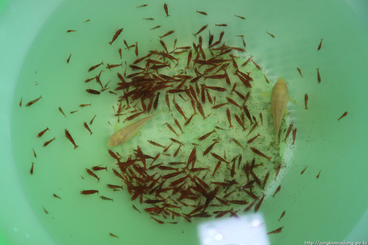 대기중인 체리새우 수백마리, 코리 도라스 2마리