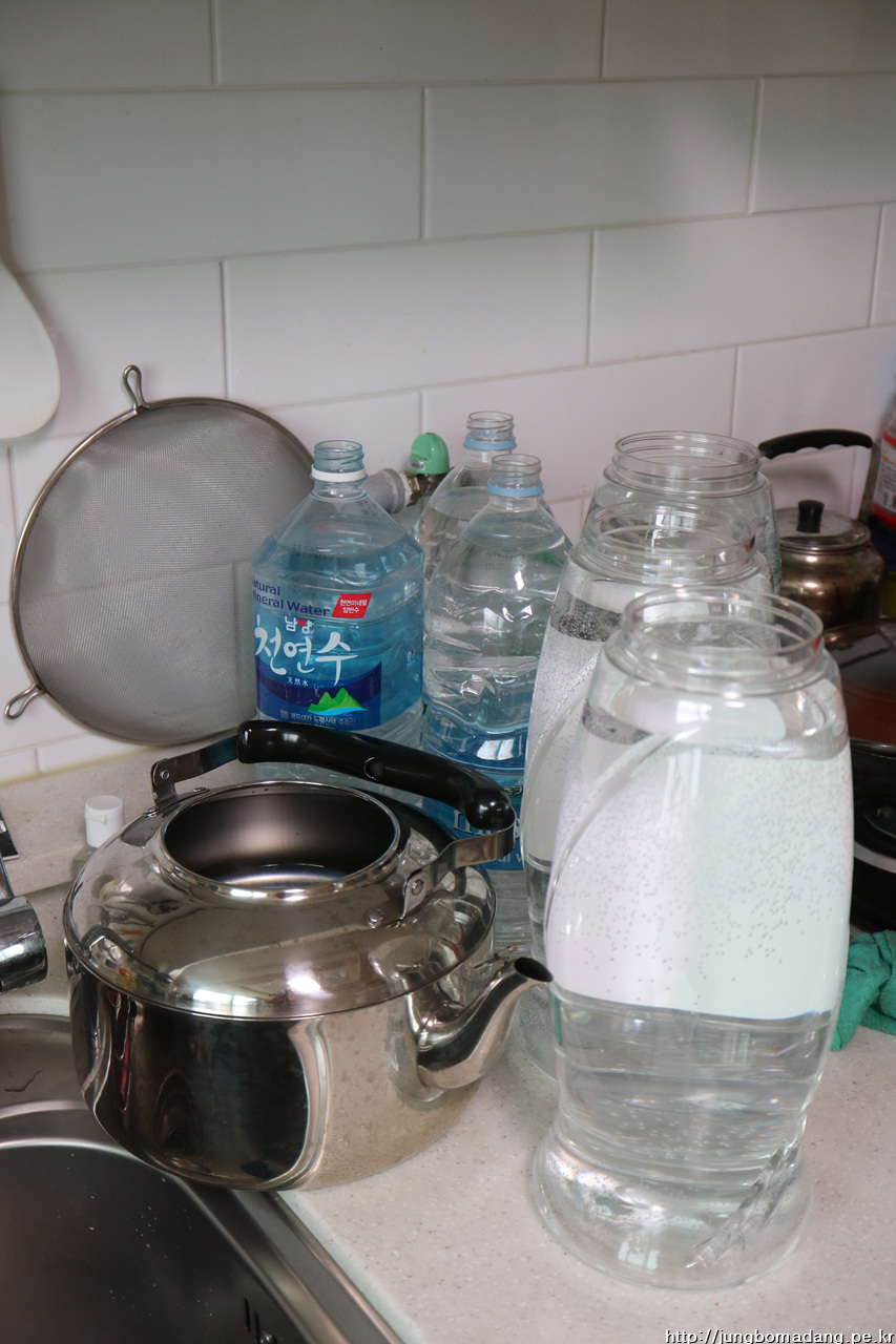 하루전에 담아둔 수돗물이 대기중...