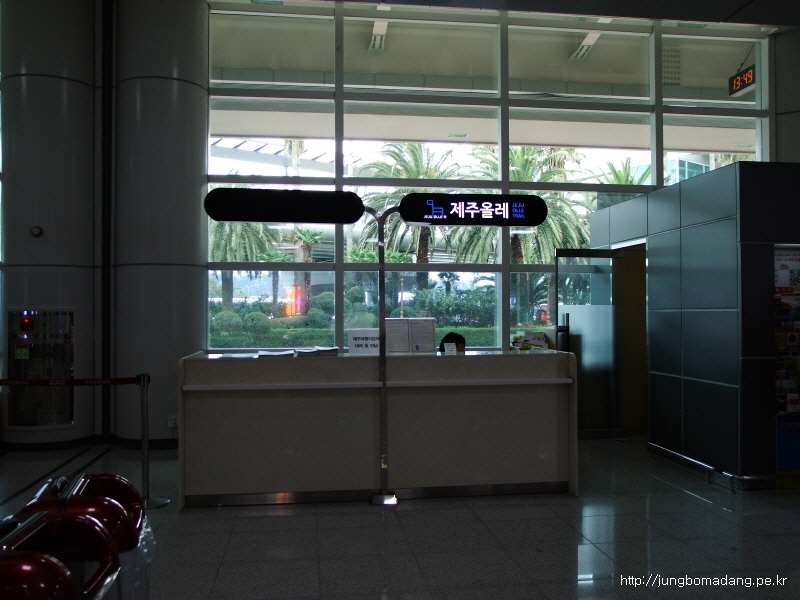 13:57 한시간 후에 제주공항에 도착하여, 수하물인 배낭을 찾고, 제주올레 패스포트를 수령하러 1층 올레안내서에 가서 수령을 합니다.