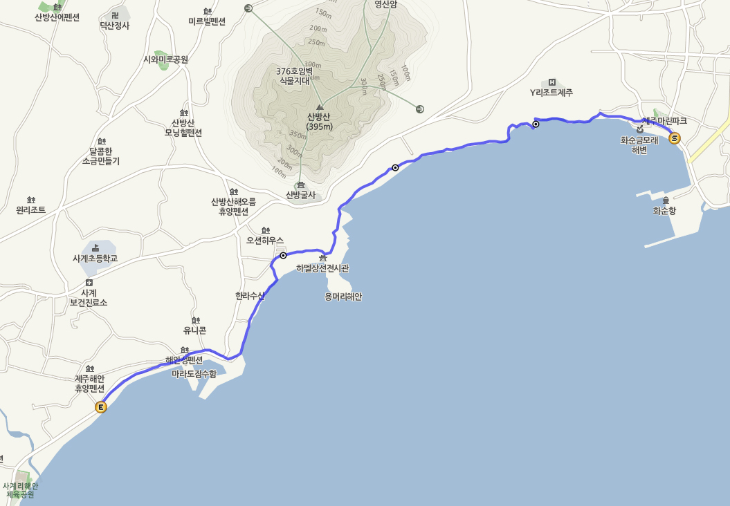 뒤로는 산방산이 보이고, 바로 옆에는 해양경찰서가 있어 뭔지 모르게 든든(?)합니다.