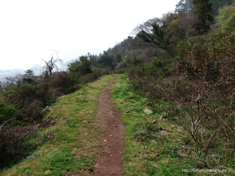 14:05 약간의 오름질이 끝나고 길이 평평하네요... 알고보니 박수기정 위를 걷는 거였습니다. 요길 넘어가야 월라봉이 나옵니다.