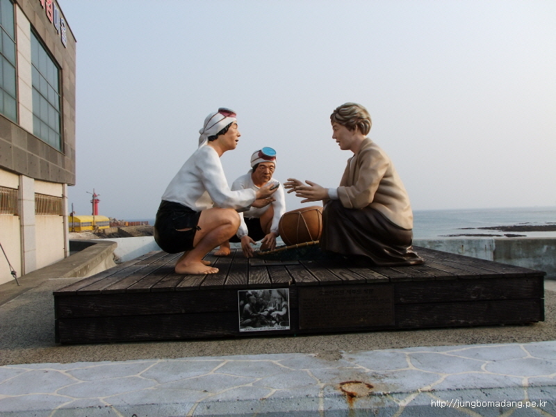 뒤로는 산방산이 보이고, 바로 옆에는 해양경찰서가 있어 뭔지 모르게 든든(?)합니다.