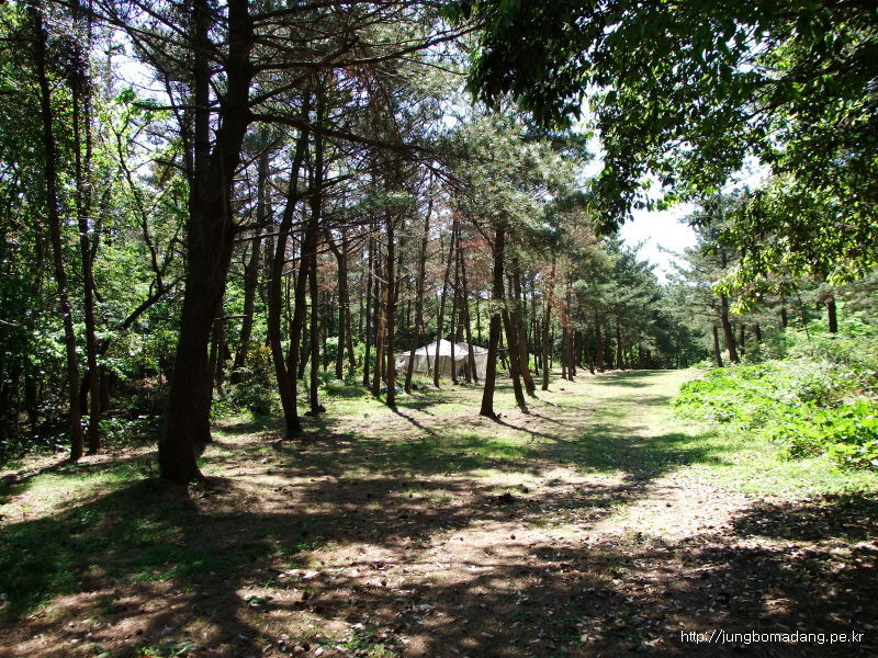 텐트 접기 전입니다. ㅎㅎ 비는 안왔는 데, 이슬이 내렸는지 주변이 축축하네요. 정자 안쪽만 쾌적 ㅋㅋㅋ 역시 정자의 위용입니다.