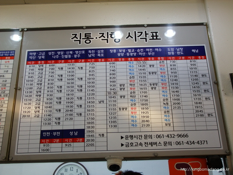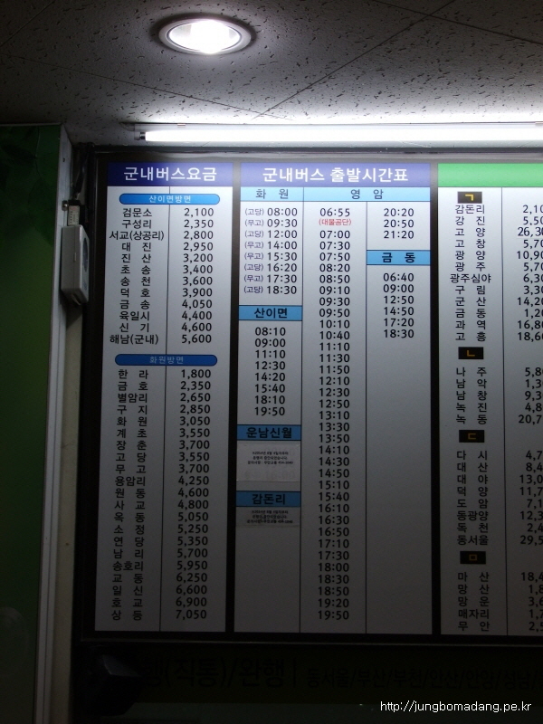 버스 시간표를 찍어보구요. 강진행 버스는 06:15 첫차이고, 5500원입니다. ^^