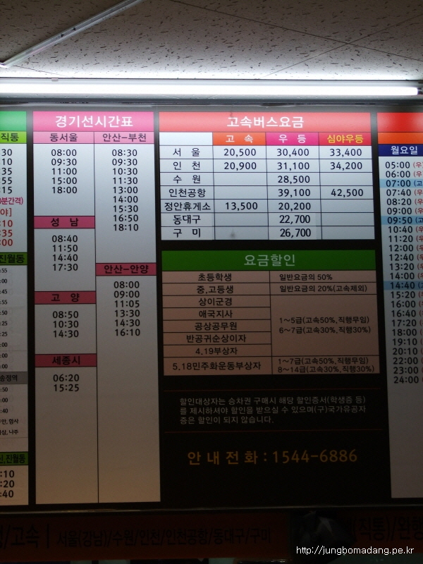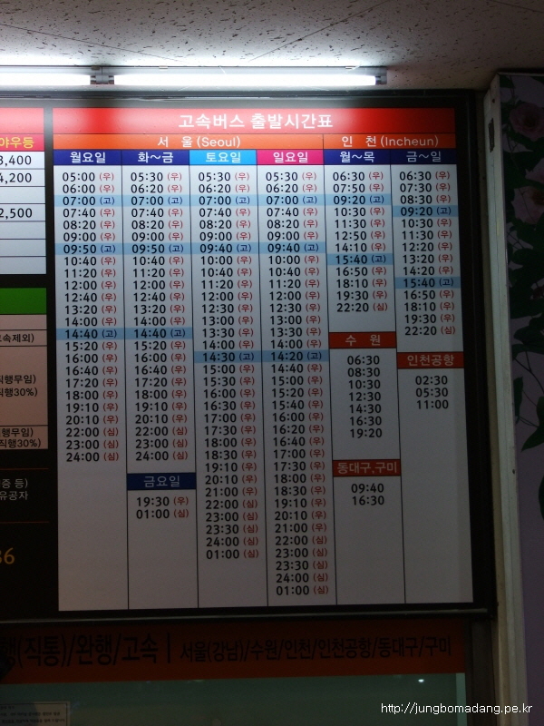인터넷으로 알아보니 07:30 버스였는 데,와서 보니 07:20으로 수정이 되었더라구요.