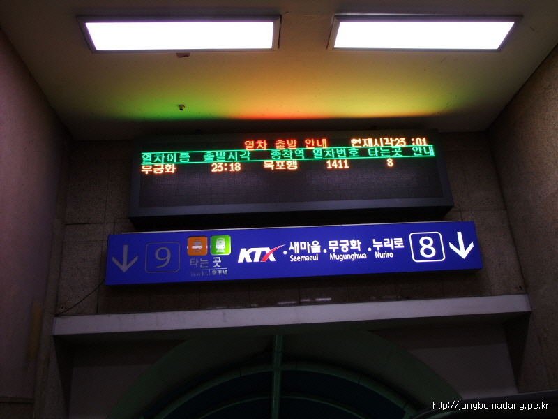 영등포역이구요... 23:18 목포행이 전광판에 보이네요...
