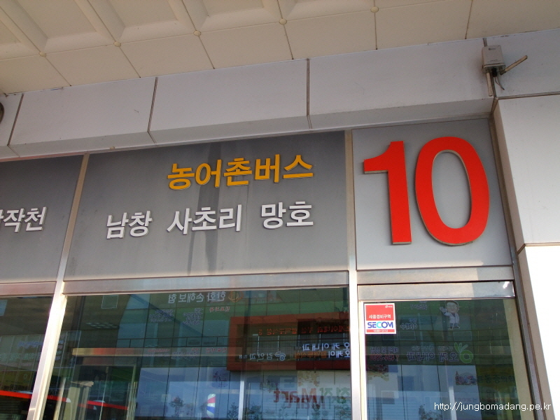요렇게 큰 번호와 함께 어디가는 지 표시되어 있는 데, 지는 석천으로 가고, 요렇게 10번에서 기다렸다가 그 앞에 버스 들어오면 기사님께 석천(나중엔 도암초등학교에서 내림) 가는 지 물어보고 타심 되여.