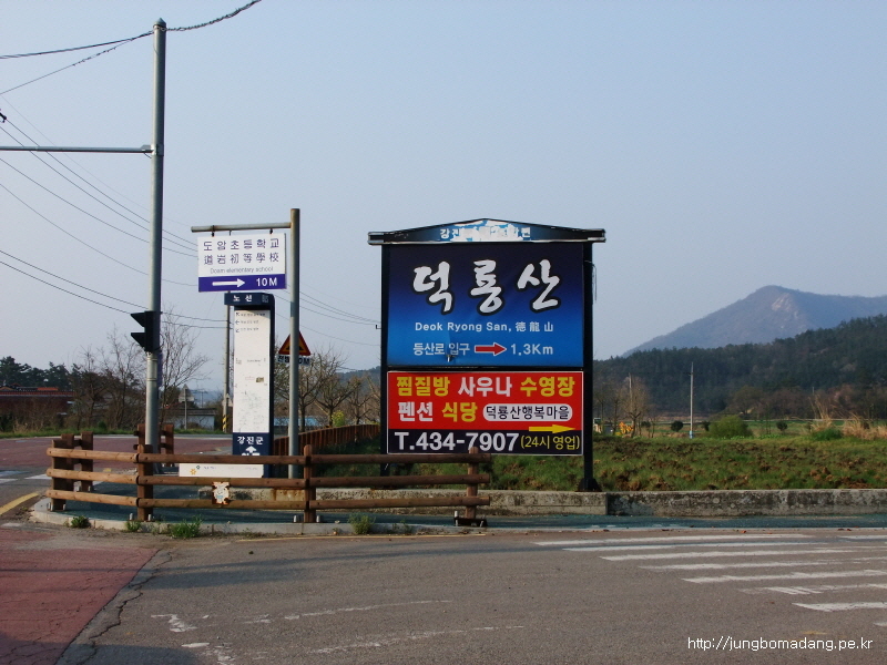 07:23 도암초등학교에 내리면 이렇게 친절하게 덕룡산 표시가 있어유. 소석문까지 1.3km 걸어가면 되구요.