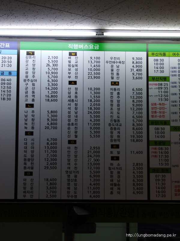 완행버스네요... 경유지도 많고... 이때는 뭐 그런가부다 했습니다.. ㅎㅎㅎ