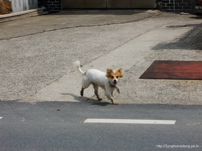반가워서 따라오는 게 아니고, 짖고 있어요 ㅠㅠ