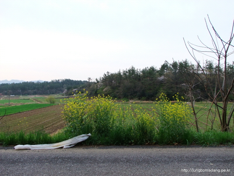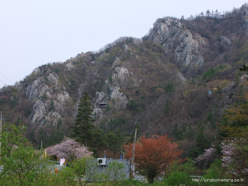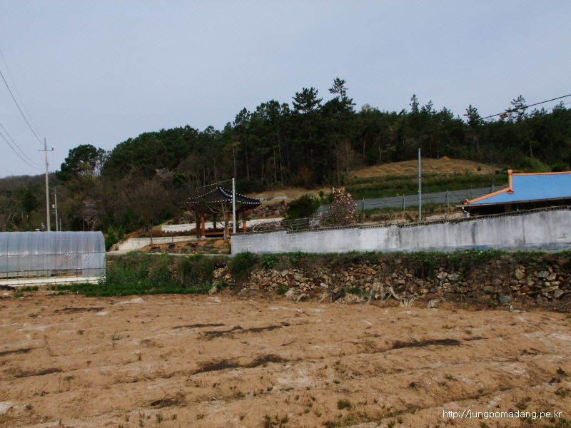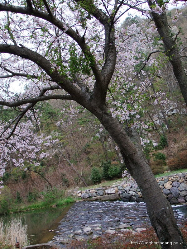 정자옆에 벚나무가 화사합니다. 훌륭한 박지네요.