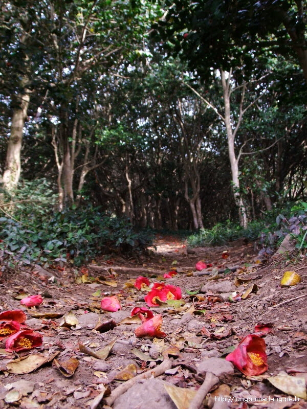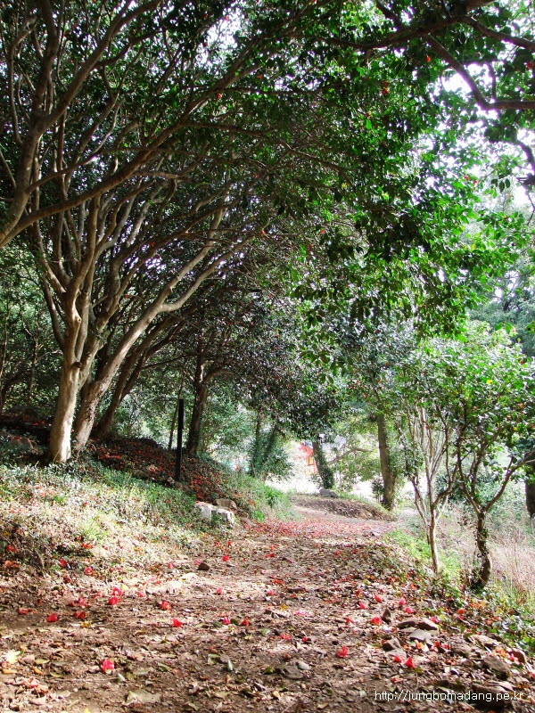 동백나무숲이네요... 떨어진 동백꽃 아쉽게 느껴지기도 하지만, 또다른 아름다움이 있습니다.