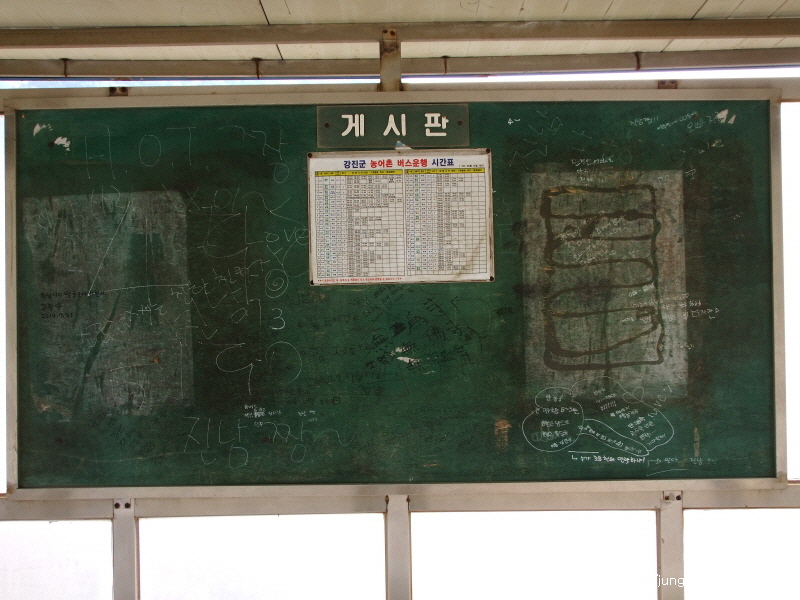 버스정류장에 있는 칠판에.... H.O.T.짱은 도대체 언제쩍 낙서인지... ㅎㅎㅎ