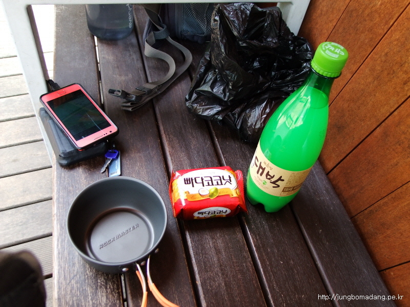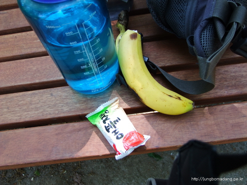 오늘 걸은 거리는 36Km.. 먹은건 바바나 2개, 인절미 1봉지, 과자 몇개, 막걸리 한병 입니다.