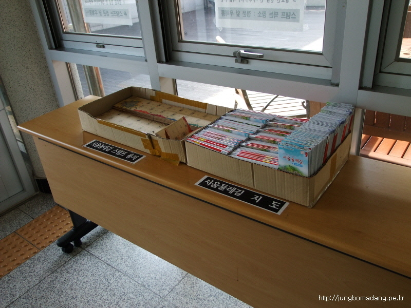 두둥~ 스탬프북과 서울둘레길 지도가 이렇게 친절하게 비치되어 있습니다. 1부씩 챙깁니다. 여기에 대한 비하인드 스토리... 원래 새벽 6시부터 시작하려고 했는 데, 스탬프북을 9시부터 배부하는 지 알고 여유있게(?) 시간 맞춰 왔는 데, 이렇게 쉽게 득템이 되다니... 좀더 빨리올껄 하는 후회가 살짝 밀려듭니다.