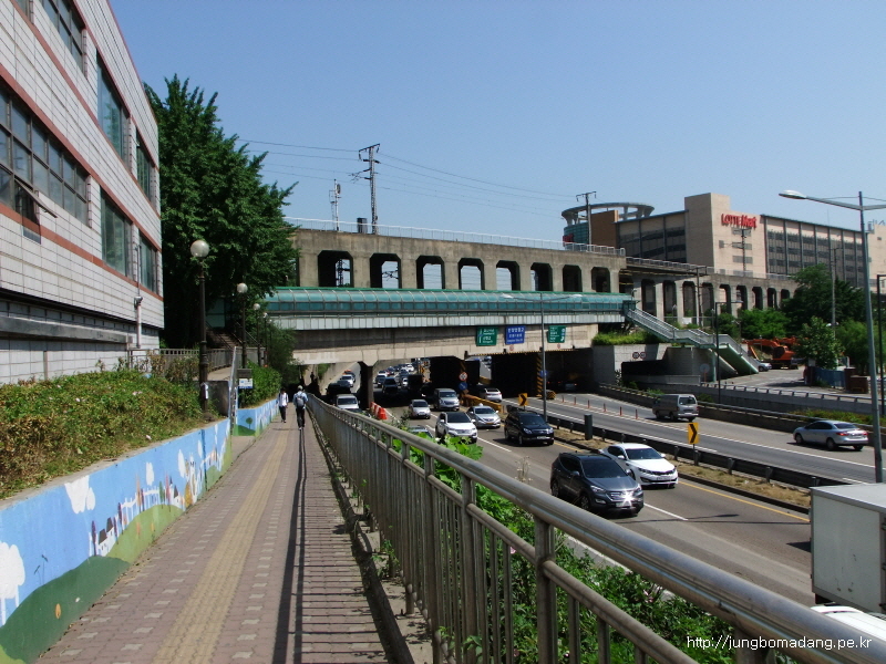 길이 좀 틀어진 거 같은데, 육교를 만나 원래 궤도로 합류하려합니다.